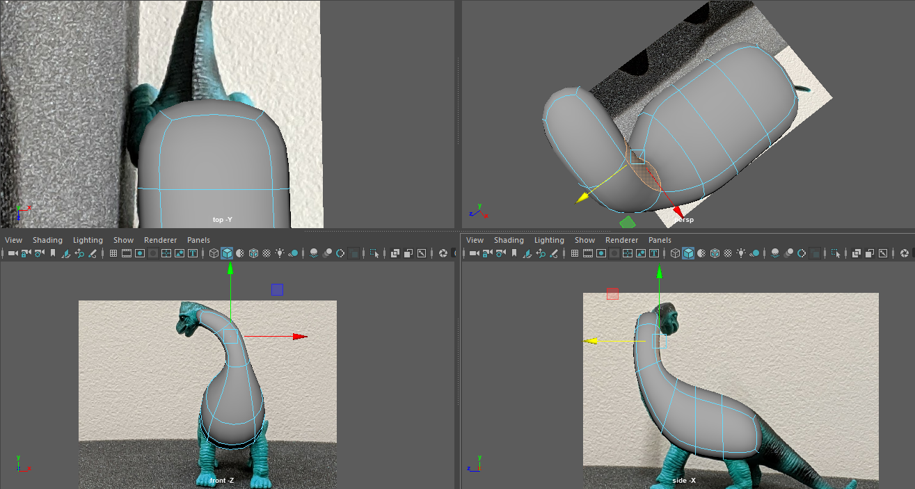 Process: I began with a cube and my photographs as image plane guides. Mostly by inserting edge loops and extruding, the model begins to take shape. I constantly checked the various orthographic views to insure I was making the model as accurate as possible.