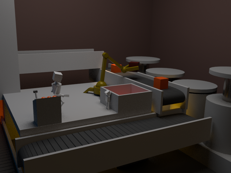 Ultimately, I'm disappointed in my product, but proud that I began with no external assets and created a full, if simple, scene with rigged characters, complex motion, and lighting, plus I had to get creative with some expressions and weighted constraints in order to make the grabber arm work convincingly. I sank so much time into the failed physics simulations that I didn't leave much for rendering... Turns out, 10+ hours isn't enough! I was only able to render out about 7 seconds of the project by the deadline. I do really like the appearance of the scene, but I wish I had succeeded in the simulation.